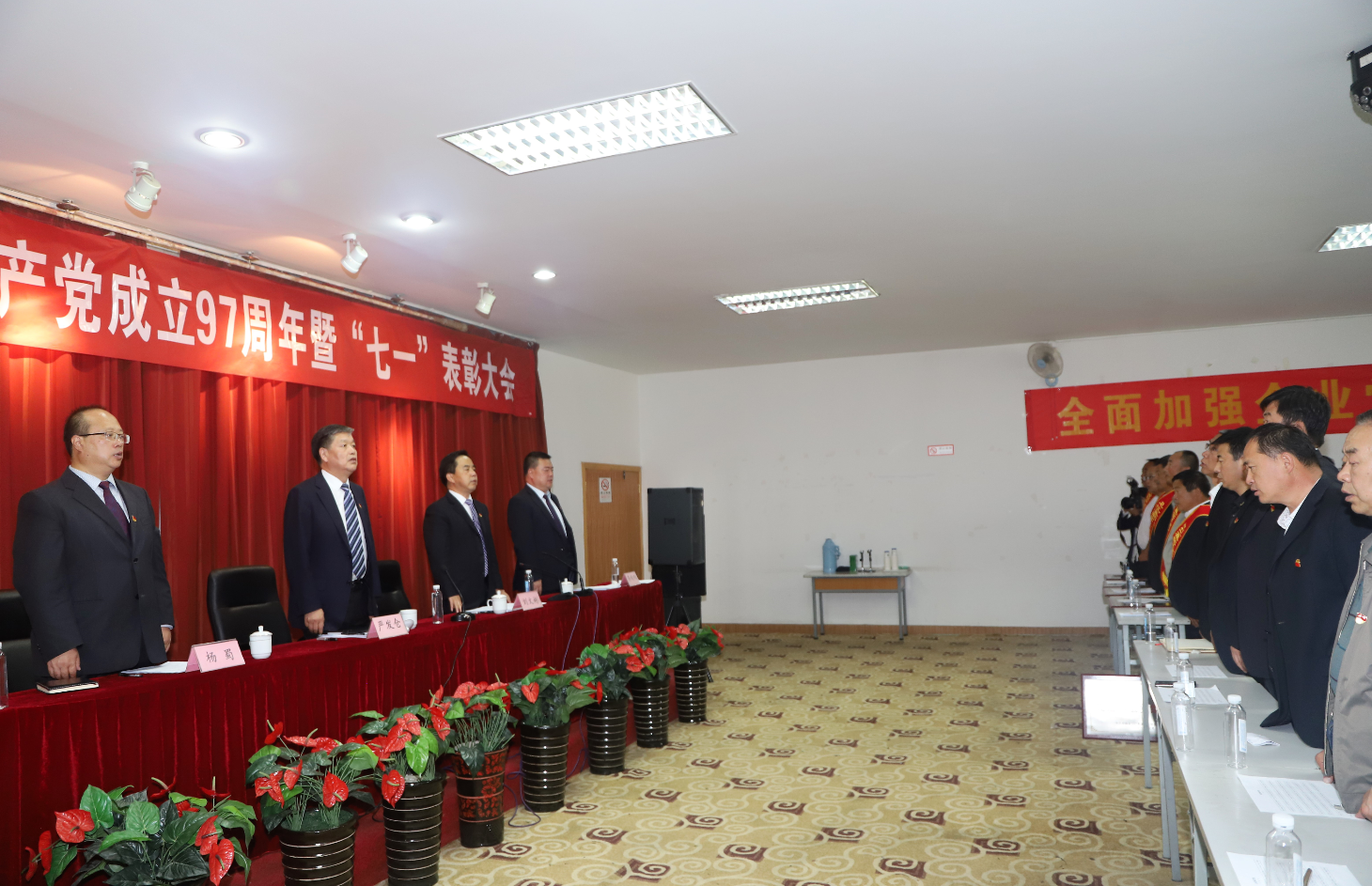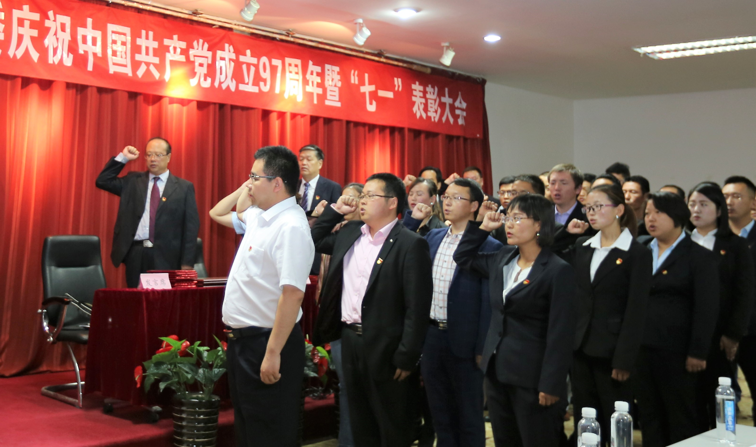 會(huì)上,24名新黨員進(jìn)行入黨宣誓,參會(huì)全體黨員重溫入黨誓言。集團(tuán)公司黨委委員、副總經(jīng)理?xiàng)钍裥x《關(guān)于表彰先進(jìn)基層黨組織、優(yōu)秀共產(chǎn)黨員和優(yōu)秀黨務(wù)工作者的決定》,對(duì)涌現(xiàn)出來(lái)的10個(gè)先進(jìn)基層黨組織、16名優(yōu)秀共產(chǎn)黨員和5名優(yōu)秀黨務(wù)工作者進(jìn)行了表彰。先進(jìn)基層黨組織代表和優(yōu)秀共產(chǎn)黨員代表做大會(huì)發(fā)言。集團(tuán)公司黨委書(shū)記、總經(jīng)理嚴(yán)發(fā)倉(cāng)作《深入貫徹落實(shí)新思想 新理念 新要求 全面加強(qiáng)企業(yè)黨建 推進(jìn)企業(yè)轉(zhuǎn)型發(fā)展》的講話(huà),對(duì)集團(tuán)公司黨建工作提出六項(xiàng)要求。黨委委員、副總經(jīng)理李向陽(yáng)同志就學(xué)習(xí)貫徹落實(shí)此次大會(huì)精神作相關(guān)要求。宣讀《關(guān)于深入開(kāi)展學(xué)習(xí)宣傳集團(tuán)公司紀(jì)念建黨97周年暨慶“七一”表彰大會(huì)精神的通知》。