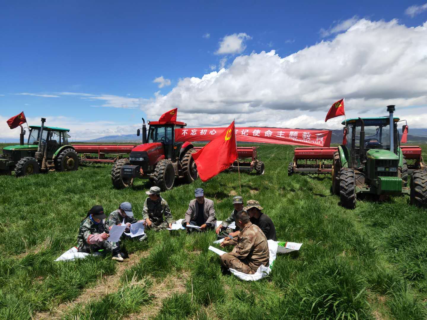6月下旬的青海高原進(jìn)入初夏,三江集團(tuán)下屬的各農(nóng)牧場青稞、油菜和牧草正進(jìn)入盛長期,草原的牧草也開始盛長,農(nóng)牧場的職工每天忙碌于田間地頭和草原牧場。全省開展“不忘初心、牢記使命”主題教育以來,三江集團(tuán)綠色的田間地頭和草原牧場黨旗飄揚(yáng),這里不僅僅是職工們工作的地方,也成為學(xué)習(xí)的地方,“田間地頭黨課”和“草原牧場黨課”成為今年農(nóng)牧場的亮點(diǎn)。