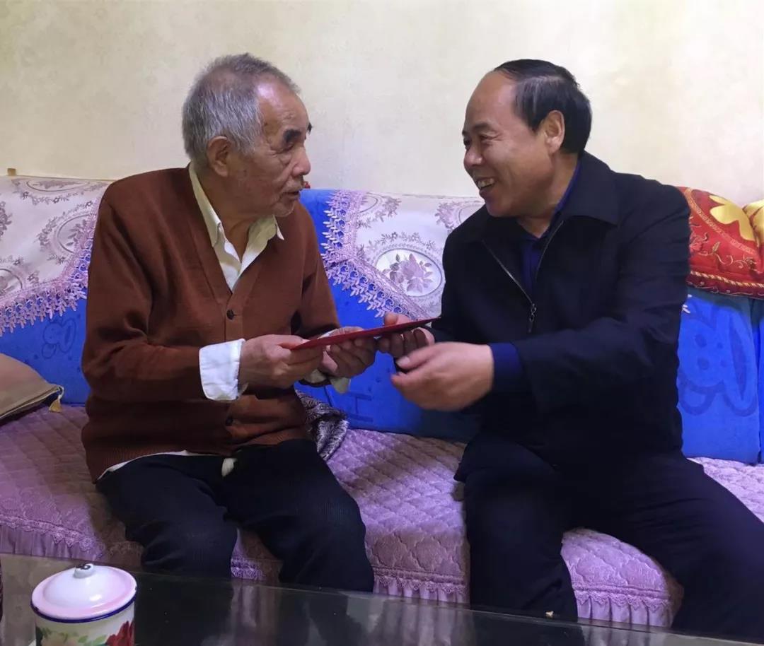 圖為集團(tuán)公司紀(jì)委書記何文康到商品儲(chǔ)備公司退休老黨員陳明坤家中走訪慰問(wèn)。